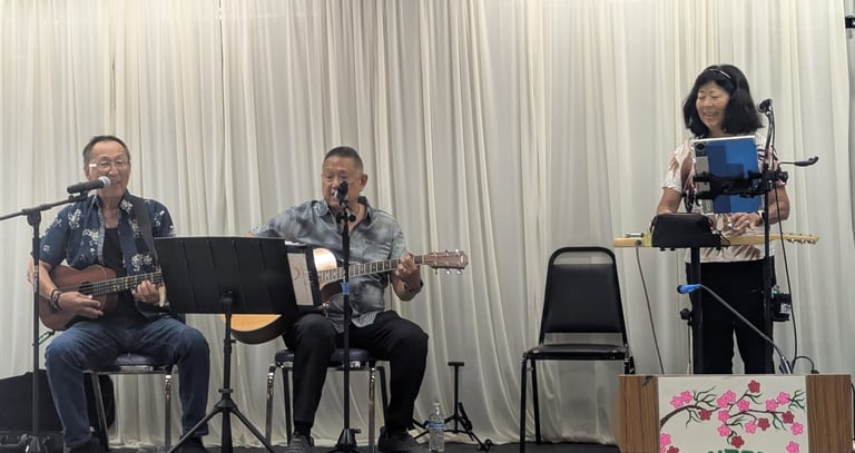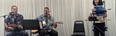 For Our July 2025 meeting, the entertainment was provided by H30. We listened to the mellow Hawaiian music performed by Ron, Skip and Carrie. A few members also participated in hula and line dancing!