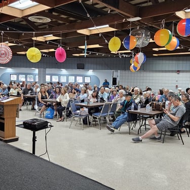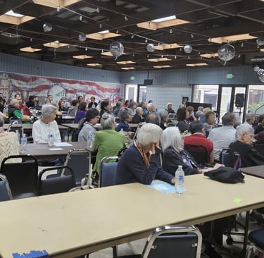 For Our February 2025 meeting, The entertainment for this meeting was provided by Rodney Durand who played music from the 60’s and 70’s. Our members enjoyed his music so much that many stood up to dance. A big crowd favorite was line dancing. It was so good to see so many members laughing, smiling, singing and having so much fun!