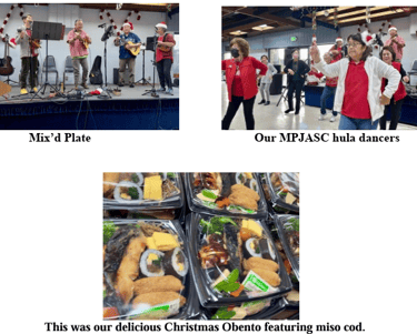 Our entertainment was provided by the band, Mix'd Plate. They played traditional and Hawaiian Christmas songs. Our "official" MPJASC hula dancers danced to the music for a few songs!